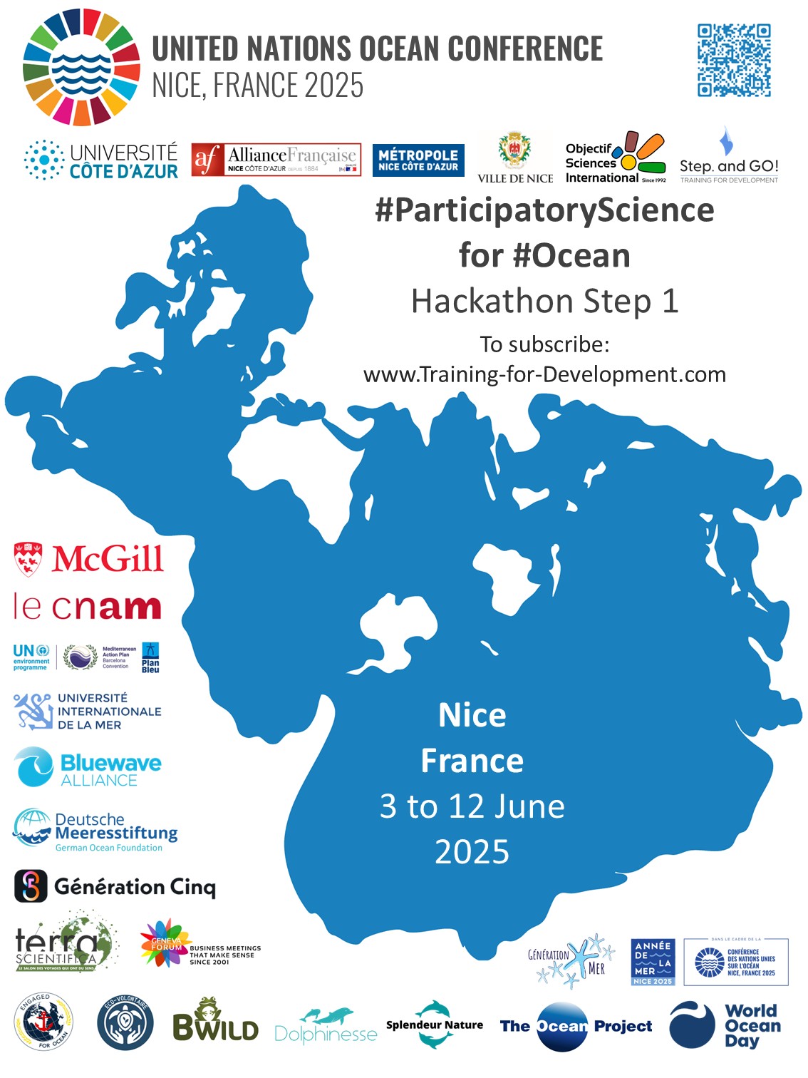 Official UNOC side event off-site. "Nice Step One Hackathon Sciences Participatives : Définition, dimensionnement et conduite de projets de Sciences Participatives pour l’Océan."